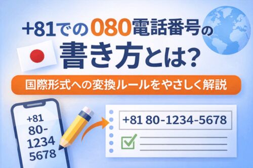 海外のサービスを利用する際に、電話番号を「+81付き」で入力するよう求められ、「どう書けばいいの?」と迷った経験はありませんか?特に「080から始まる番号はどう書けばいいの?」と迷ってしまう方は多いものです。 この記事では、080電話番号を+81形式で…
