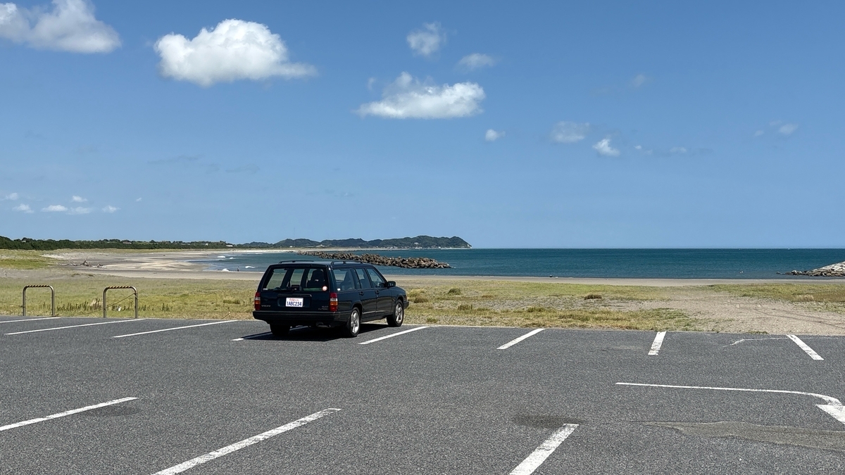 先週の平日、ふと思い立って海へサーフィンに出かけました。駐車場に車を停め、ふと振り返ると、澄み渡る青空と穏やかな海を背景に、愛車のボルボ940クラシックが静かに佇んでいました。